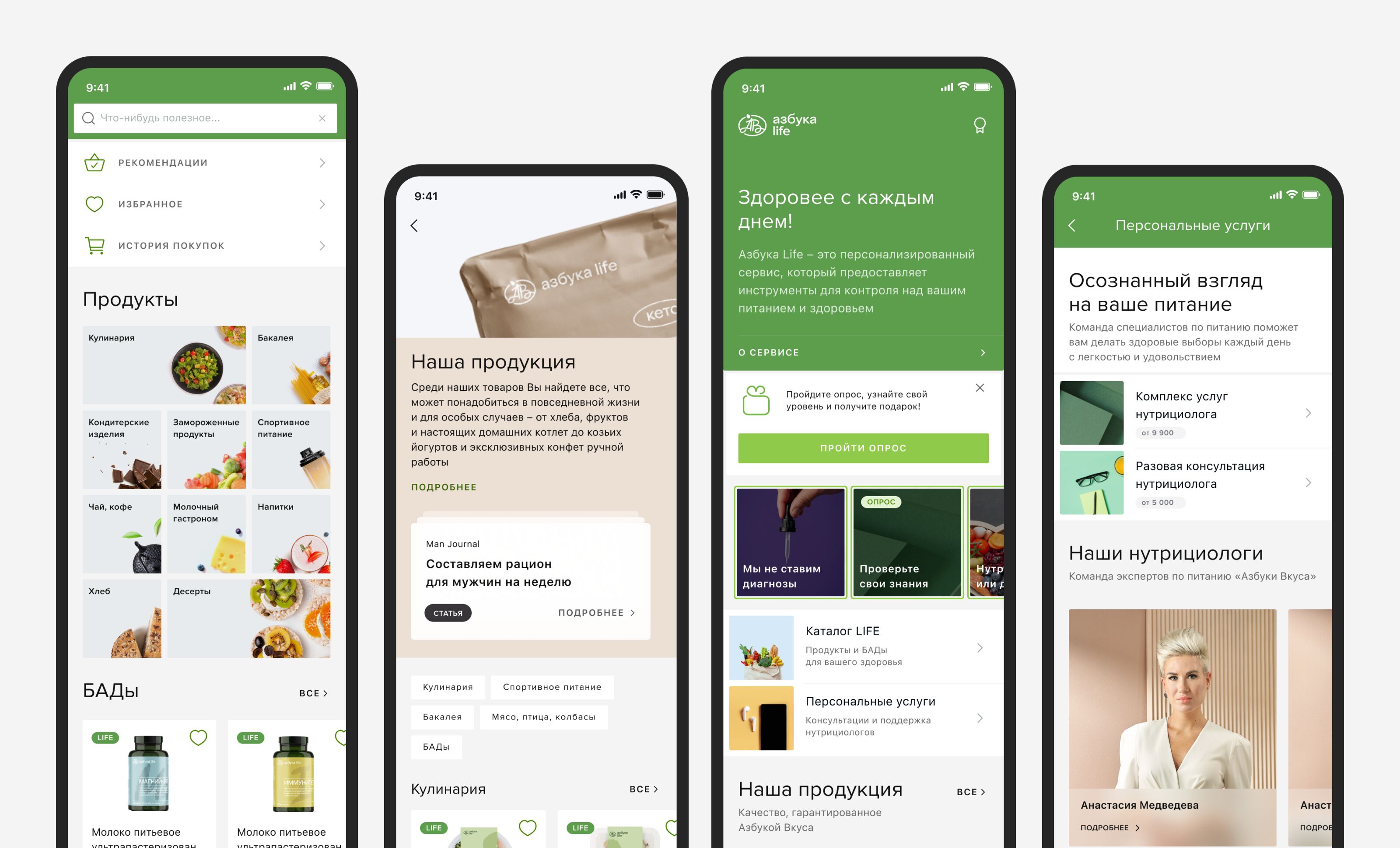 в рамках проекта необходимо было спроектировать новый сервис, посвященный здоровью, правильному питанию и полезным привычкам от Азбуки Вкуса.