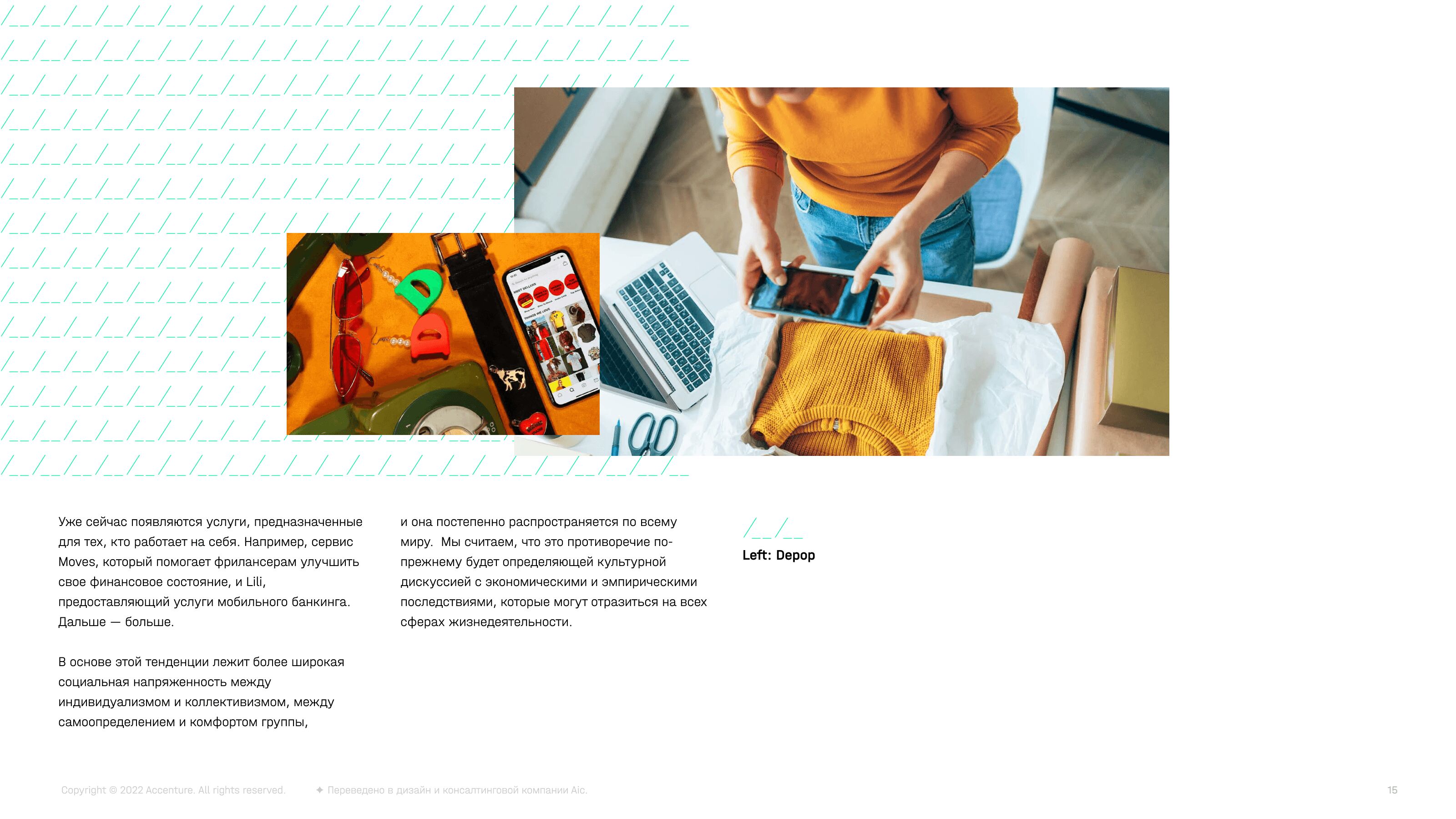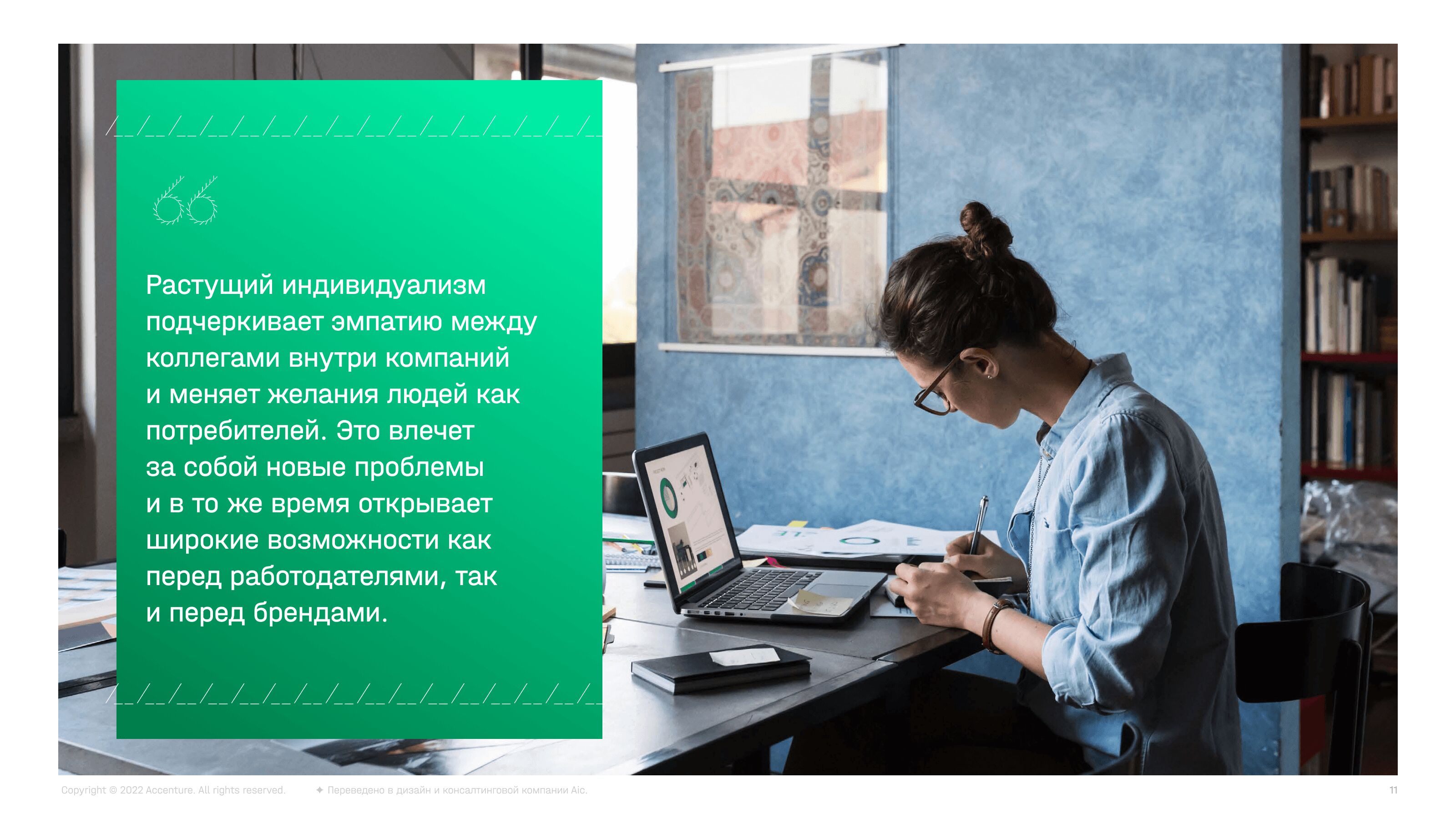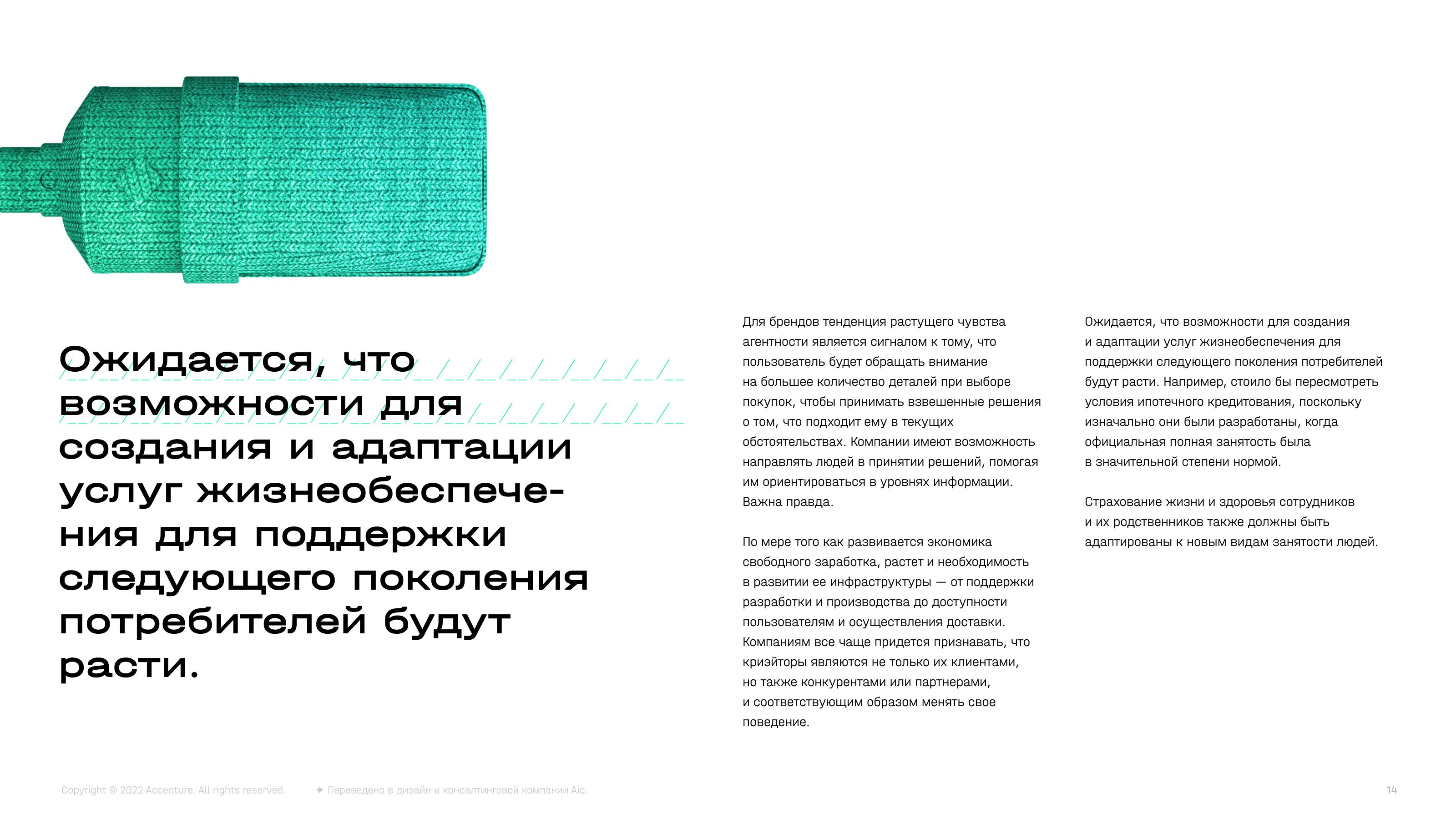 каждый год Accenture пристально отслеживает потенциально важные тенденции и сигналы по всему миру в попытке вовремя уловить изменения в обществе, бизнесе и технологиях. спустя несколько месяцев анализа, появляется очередной отчет Fjord Trends. он отличается от аналогичных в первую очередь фокусом, так как включает не более 5–7 глобальных трендов, во вторую — глубиной анализа.